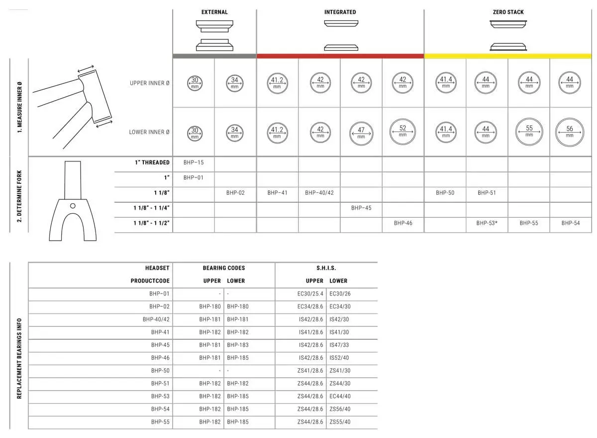 BBB BHP-46 integrerede drop in styrfittings lejer til Tapered stel med 1.1/8” topleje og 1.5” bundleje.