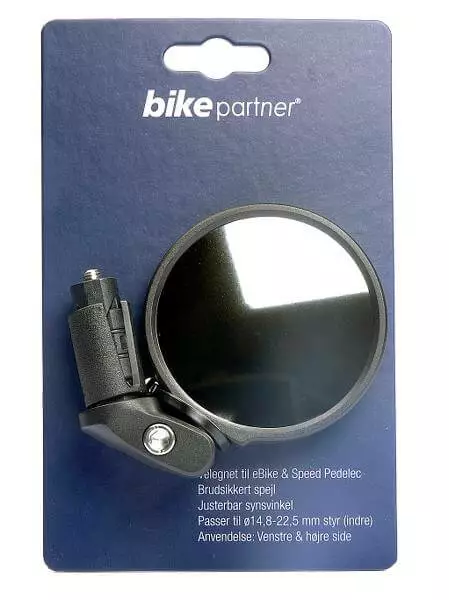 BikePartner sidespejlet er et brudsikkert spejl til cykler og elcykler med lige styr.