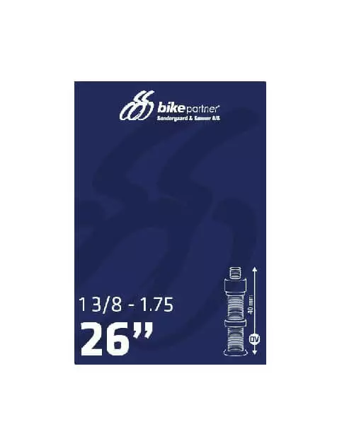 BikePartner cykelslange til cykler med 26” hjul. Slangen har almindelig cykelventil – Dunlop-ventil og passer i dæk med størrelsen 26 x 1 3/8”.