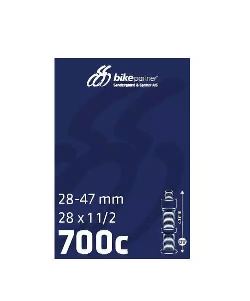 BikePartner cykelslange til cykler med 28” hjul. Slangen har almindelig cykelventil – Dunlop-ventil og passer i dæk med størrelsen 28 x 32 – 47C.