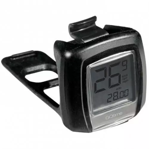 Bontrager Gotime cykelcomputeren er en lille, simpel, trådløs cykelcomputer i silicone cover. Gotime computeren har 1 knap til betjening og nulstilling og er derfor nem og simpel at betjene.