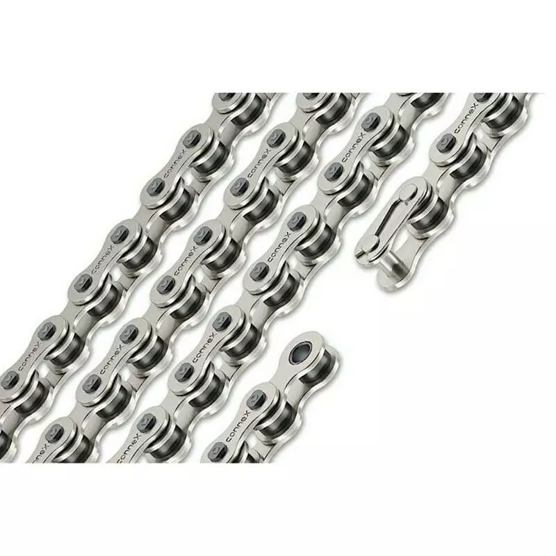 Connex cykelkæde med nikkelbelagt overflade som giver større slidstyrke.