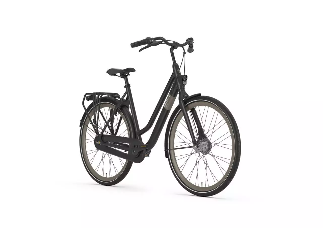 Cyklen har 7 indvendige gear, fodbremse og vedligeholdelsesfri rullebremse på forhjulet. Derudover får du lukket kædekasse så kæden kræver minimalt vedligehold, godkendt lås, navdynamo og LED cykellygter.