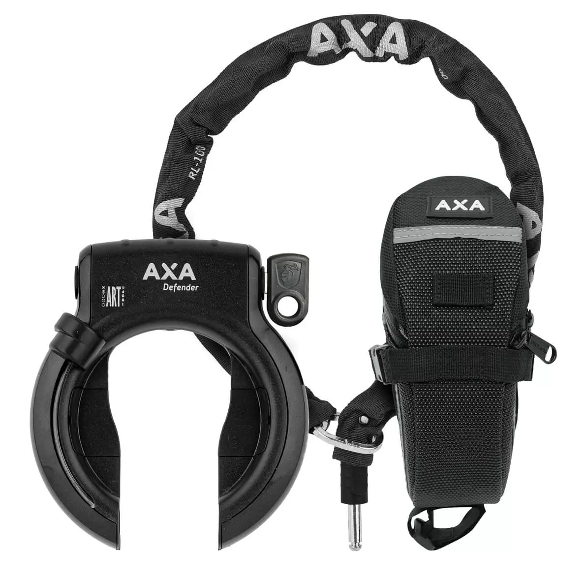 Låsesættet indeholder også en sadeltaske til opbevaring og transport af plug-in kædelåsen når du cykler.
