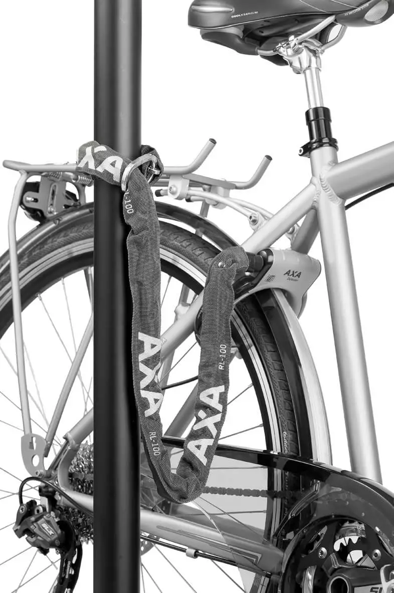 Ringlåsens passer på de fleste almindelige cykler og elcykler. Plug-in kæden måler 5,5 mm x 100 cm.