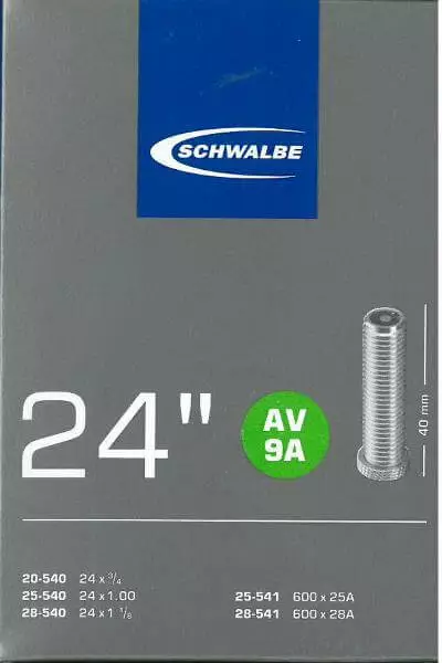 Schwalbe AV9A slange til kørestolshjul og andre smalle 24” dæk.