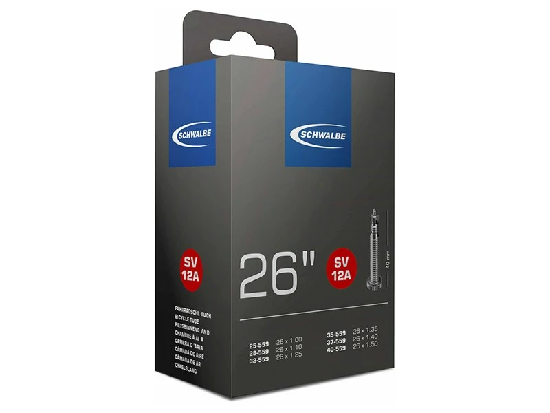 Schwalbe cykelslanger er slanger i bedste kvalitet. Alle slanger trykprøves inden de pakkes i kasser. Denne SV12A slange passer til 26” hjul.