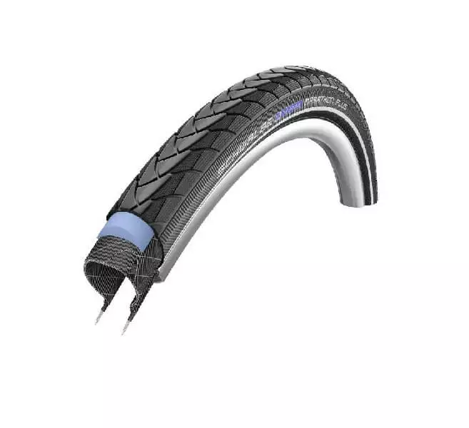 Alle dæk med luft kan punktere, men Marathon Plus dækket med den kraftige SmartGuard punkteringsbeskyttelse indbygget er så kraftig at den afviser alle spidse og skarpe genstande. Det kraftige indlæg er så tykt, at en tegnestift ikke kan gå igennem. Derfor har Schwalbes Marathon Plus dæk fået kælenavnet punkterfri.