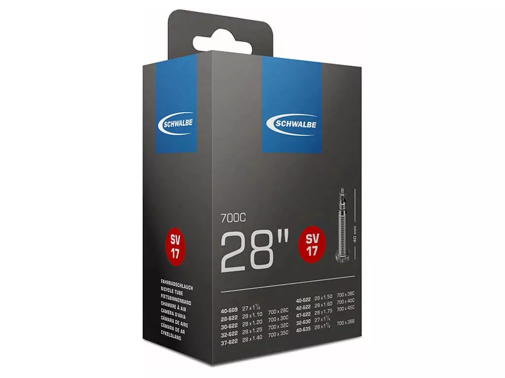 Trykprøvet cykelslange med 40 mm lang racer ventil.